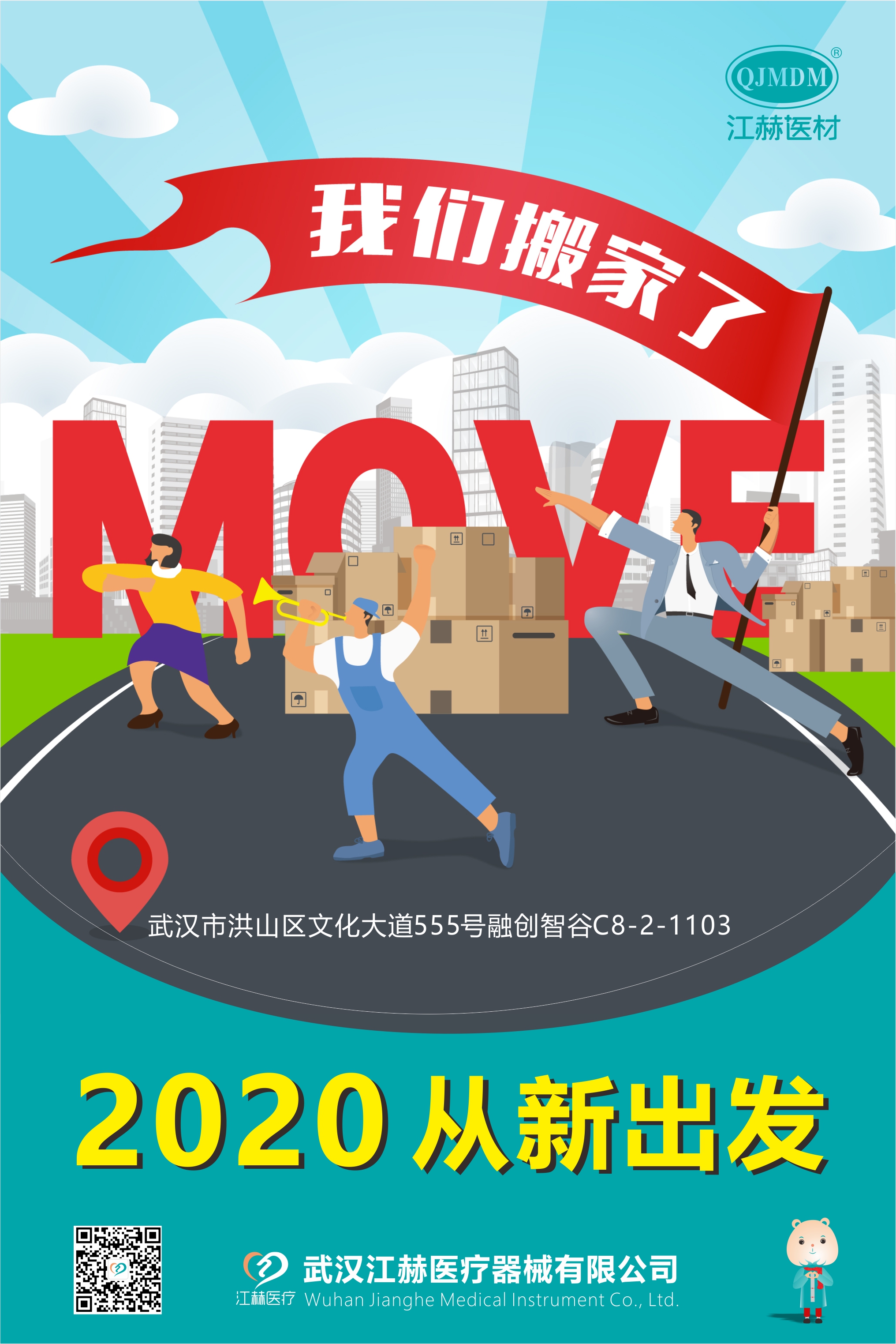 您好,承蒙您長期以來對武漢江赫的大力支持和配合,在此本公司全體員工表示由衷的感謝,因業(yè)務(wù)發(fā)展的需要和公司規(guī)模的擴大,自1月10日起,將搬遷至新的地址——武漢市洪山區(qū)文化大道555號融創(chuàng)智谷C8-2-1103,因公司搬遷期間給您帶來的不便,我們深表歉意!我司將以此搬遷為一個新的起點,進一步為廣大客戶提供更優(yōu)質(zhì)的產(chǎn)品和服務(wù),與您共同發(fā)展!并再次感謝您長期以來給予本公司的支持和合作。