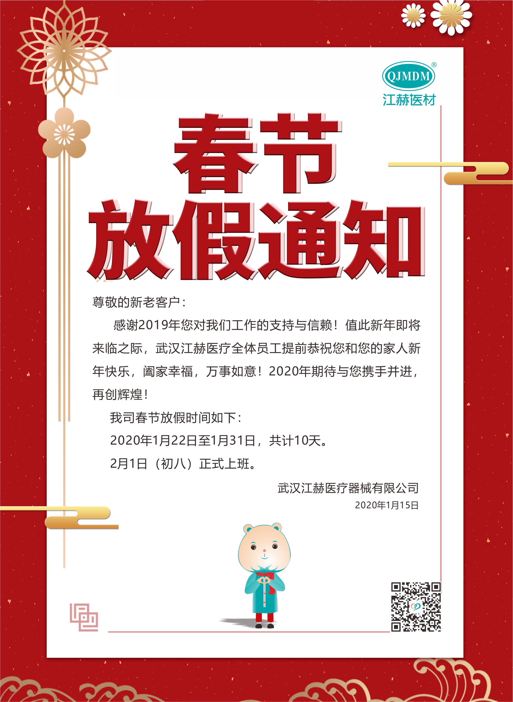 武漢江赫醫(yī)療器械有限公司于1月22日-1月31日放假2月1日(正月初八)正式上班!預祝大家新春快樂,“鼠”你好運!