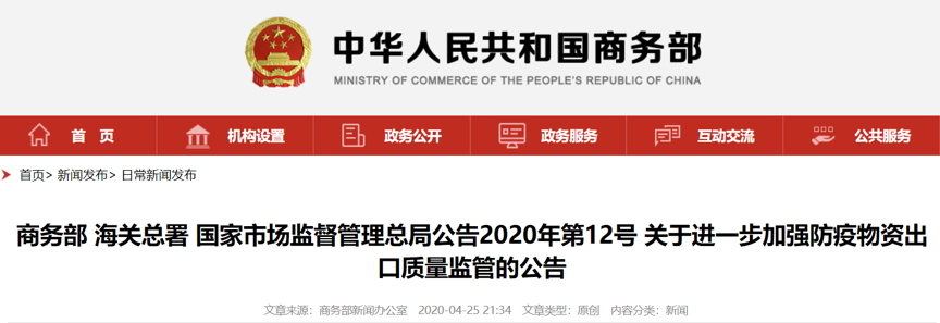 繼今年3月31日商務(wù)部、海關(guān)總署、國(guó)家藥監(jiān)局聯(lián)合發(fā)布5號(hào)公告后,三部門日前再發(fā)12號(hào)公告,強(qiáng)調(diào)自4月26日起,嚴(yán)格對(duì)非醫(yī)用口罩的出口質(zhì)量監(jiān)管。