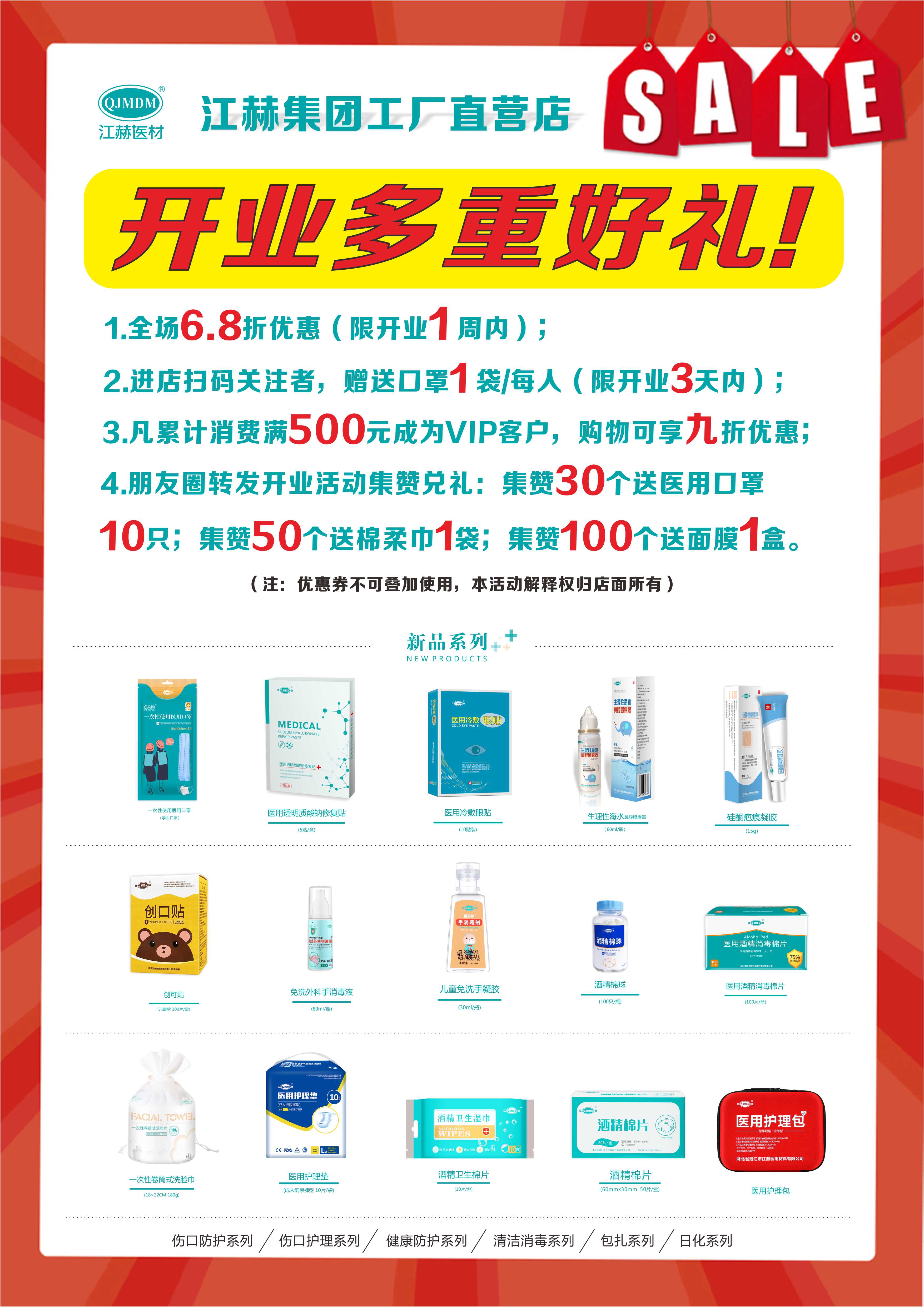 4. 朋友圈轉(zhuǎn)發(fā)開(kāi)業(yè)活動(dòng)集贊兌禮:集贊30個(gè)送醫(yī)用口罩10只;集贊50個(gè)送棉柔巾1袋;集贊100個(gè)送面膜1盒。