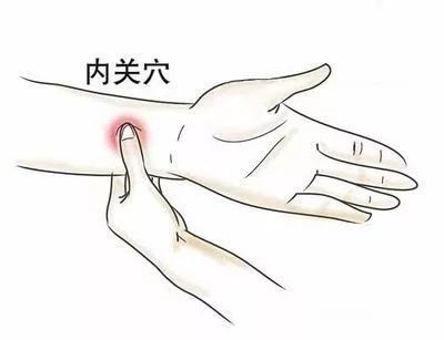 5.揉關(guān)寬胸:用大拇指按揉內(nèi)關(guān)穴,先揉左手后揉右手,順時(shí)針按揉一周為一拍,共32拍。