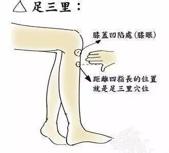 6.引血下行:分別用左右手拇指按揉左右小腿的足三里穴,旋一周為一拍,共做32拍。