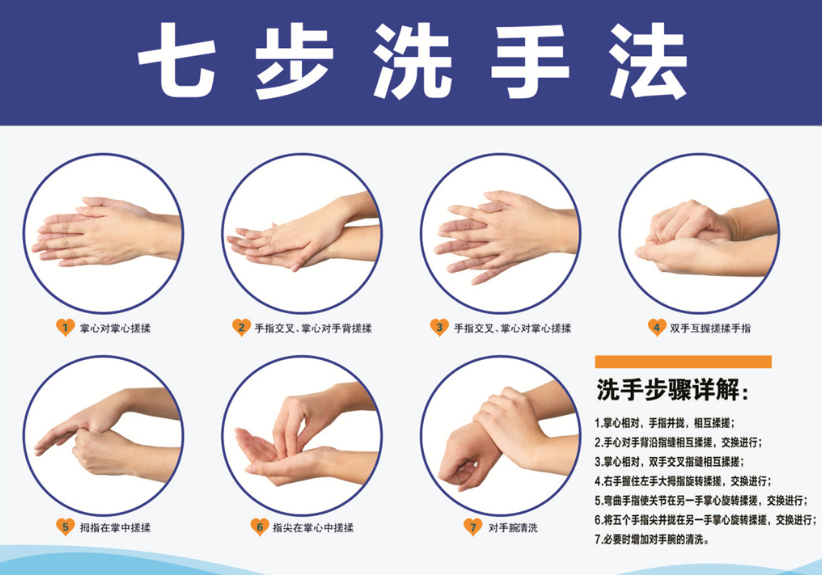 戴口罩講究正確的戴法,洗手也講究正確的洗法。黃希介紹,要在流動水下淋濕雙手,取適量洗手液(肥皂),均勻涂抹整個手掌、手背、手指和指縫,然后揉搓15秒。洗手揉搓有個七字口訣,即內(nèi)-外-夾-弓-大-立-腕。第一步掌心互相揉搓,然后掌心對手背交叉揉搓,掌心對掌心十指交叉揉搓,這就是“內(nèi)-外-夾”;“弓”就是十指彎曲,如弓,緊扣著轉(zhuǎn)動揉搓;之后將拇指握在掌心轉(zhuǎn)動揉搓,還有指尖揉搓,最后清潔手腕。這樣才能保證手部的徹底清潔,避免病毒經(jīng)由手從口鼻進行傳播。出門在外,也要備好含酒精消毒產(chǎn)品作為肥皂和流水洗手的代替。