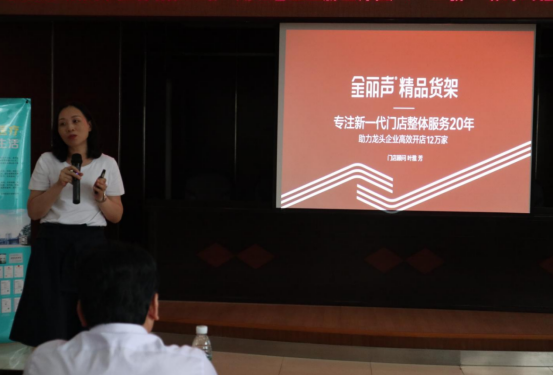 深圳金麗聲創(chuàng)始人、董事長葉雅芳女士介紹了金麗聲精品貨架“三合一管理體系”。該體系將打通線上、線下渠道,靈活服務年輕一代消費者,大大提升藥店營銷能力。