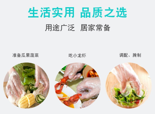 用途:一次性PE手套多用于家庭清潔,化學(xué)檢驗(yàn),機(jī)械園藝,食品、衛(wèi)生及工農(nóng)業(yè)防護(hù),染發(fā),護(hù)理洗滌,用餐(如吃龍蝦,大骨頭)等等,佩戴可免去洗手之不便。