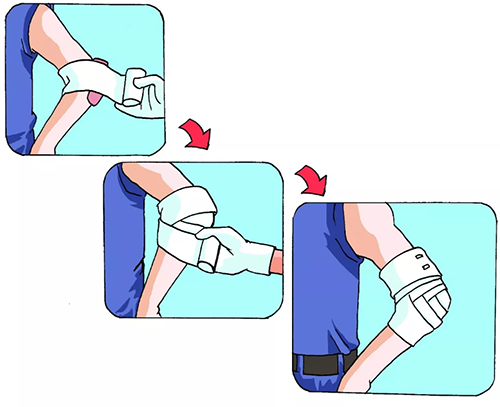 ·包扎結(jié)束時(shí),在關(guān)節(jié)的上方重復(fù)纏繞一圈固定。
